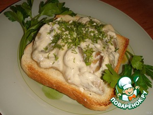 В зависимости от способа подачи это блюдо может быть и гарниром, и подливкой, и закуской, и... решайте сами... А готовится очень быстро! Так что, если гости на пороге, угощайте их такими грибочками! А моей подружке Танюшке (tat70 ) опять превеликое спасибо за помощь с названием блюда!