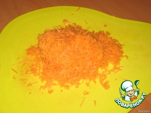 Морковь натереть на мелкой терке и добавить к фаршу.