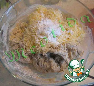 Теперь вводим разрыхлитель и сыр