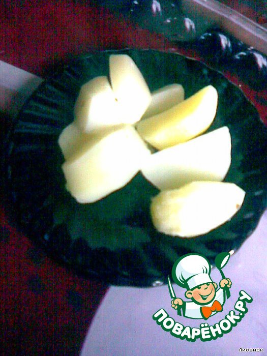 • картофель очистить и порезать на 4 части вдоль.Закинуть в кипящий бульон.Проварить минут 15.