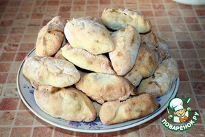 Пирожки выложить на смазанный маслом противень и выпекать в духовке 30-40 минут при температуре 220-250 градусов.
