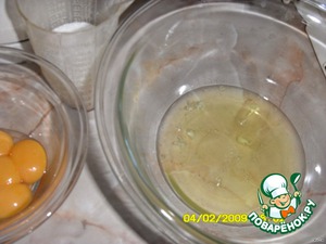 Желтки и сахар растереть до получения светло-желтого однородного крема.