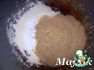 Всыпать муку, разрыхлитель и молотые ореxи.