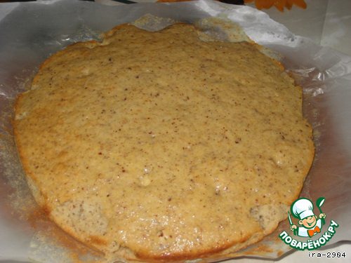Все ингредиенты для теста делим пополам и выпекаем 2 коржа, один ореховый, другой с какао. Да, орехи надо смолоть в мелкую, мелкую крошку. А можно и не совсем в мелкую! -