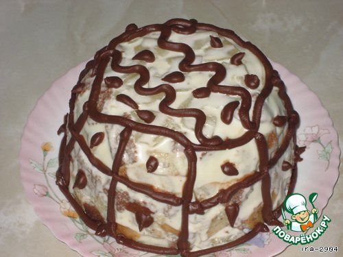 На утро у меня картина была примерно такая. Я начала ломать голову, чем же, а главное как украсить! Простите, но на большее меня не хватило. Растопила на водяной бане шоколад с маслом и с помощью кондитерского мешка попыталась украсить.