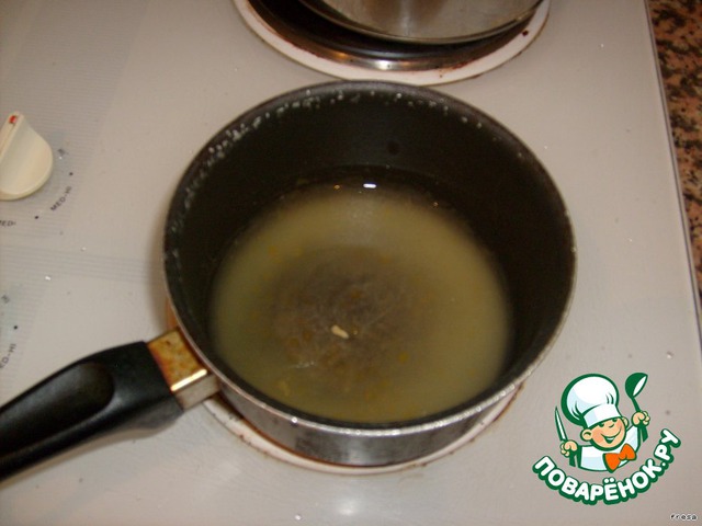 в сковородку сыпем сахар и выливаем сок, пусть минут 10 покипит на медленном огне -