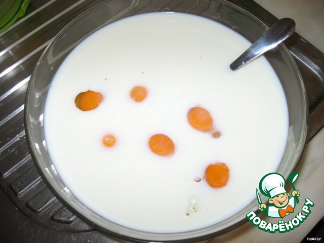 • Добаляем молоко (отмеряем 2-мя банками от сгущенки)