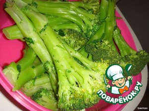 В подсоленной воде отвариваем брокколи не больше 5 минут, прямо с "ногами", не разбираем на соцветия, все пускаем в ход!