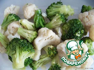 Цветную капусту и брокколи отвариваем в подсоленной воде. Охлаждаем.