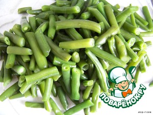 Фасоль стручковую отвариваем в подсоленной воде и охлаждаем.