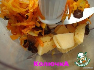 в этот момент в блендер складываем наши овощи и сыр измельчаем