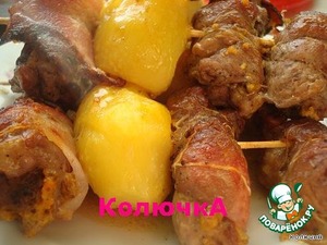 и в духовочку, перед этим пару долек лимона выдавливаем на наши палочки, шкурки выкладываем к мяску