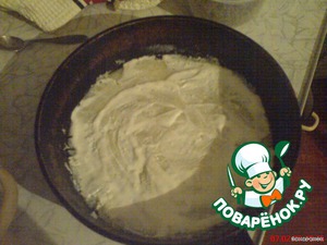 И завершающий третий слой - картофель. Его тоже смазываем сметаной.