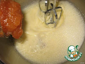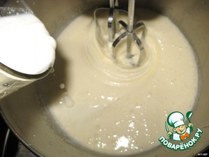 Поскольку мой миксер взбивает сам, без моей помощи, я тем временем смазывала и посыпала форму мукой, еще сэкономив время.