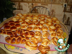 Вот то, что мы успели испечь за 4 часа. Правда, кое-кто у нас немножко утащил ватрушек!