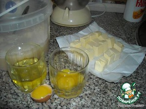 Затем отделяем белки от желтков (3 яйца целиком идут в тесто + белки от 3 яиц).