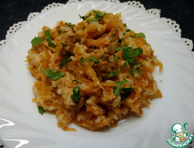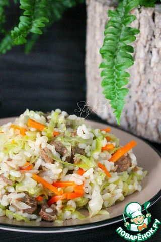 Рецепт «Тушеная капуста с мясом и рисом»: