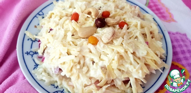 Следующий слой - сыр (тоже трется на мелкой терке),