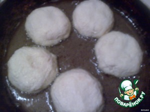 По рецепту журнала эти шарики надо жарить в большом количестве масла. Но я решила, что они будут слишком жирные, и сделала их в виде маленьких сырничков, слегка приплюснув шарик.