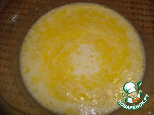 Яйцо+молоко+масло осторожно ввести в мучную массу. Перемешать.