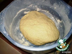 Добавить муку, вымесить тесто. Разделить его на 8 частей.
