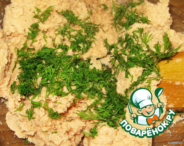 Добавить мелко нарезанную зелень, соль и специи (по желанию) и тщательно перемешать.