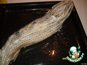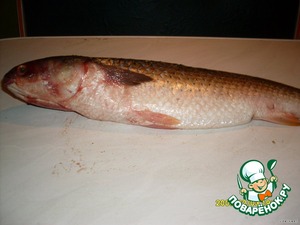 рыбку очищаем от чешуи,вырезаем жабры.На спинке,возле плавников,делаем надрезы и,аккуратненько подрезая,при помощи ножниц,через спинку вытаскиваем хребет и кишки