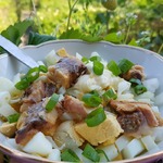 Кстати для этого салата я иногда покупаю свежую горбушу, варю еe с лаврушкой, перцем и солью. Тоже очень вкусно и дешевле, а оставшийся бульон заправляю как рыбный суп.