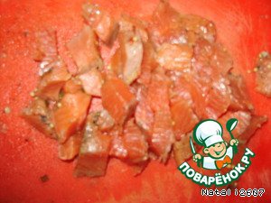 смешать оливковое масло 3-4 ст. л., горчицу 1 ч. л., сок лимона 1 ст. л., приправу измельченную для рыбы 1 ч. л. -