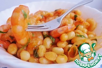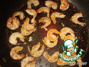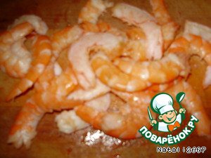 Тигровые креветки разморозить, почистить от панциря и икры.