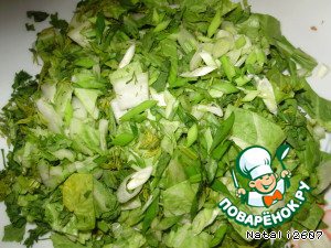 Зеленый лук, петрушку и укроп мелко измельчить.