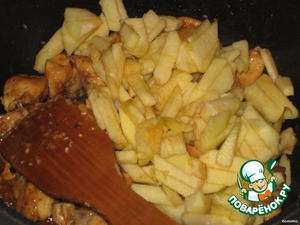 Как закипело сразу добавить яблоко, прогреть все вместе около 4-6 минут.