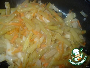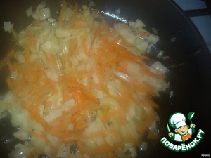 Потом добавляем морковь. Еще жарим, примерно, минуту.