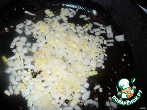 На большой сковороде (или в воке) в растительном масле обжарить лук с пропущенным через пресс чесноком. -
