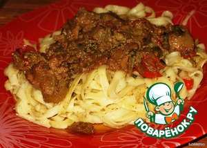 Рагу из куриной печени с яблоком