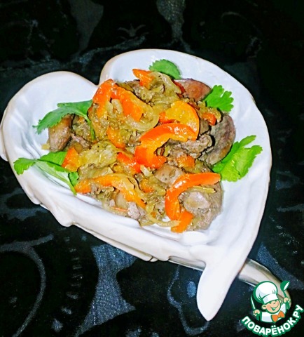 Рагу из куриной печени с яблоком и сладким перцем. Нежная печень в сочетании с овощами...
