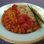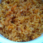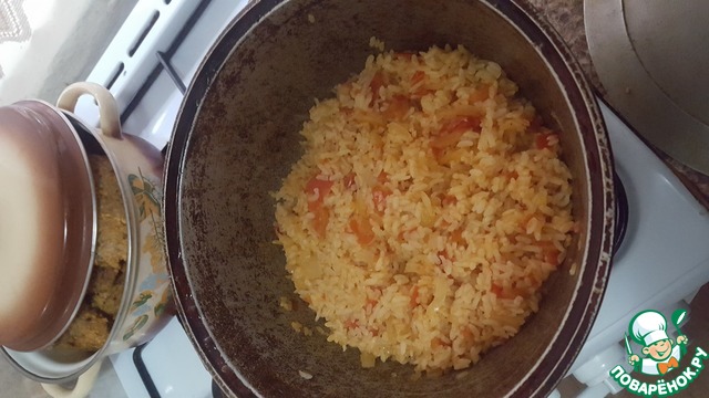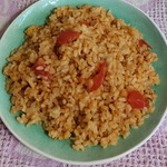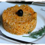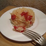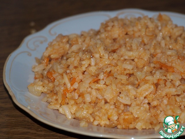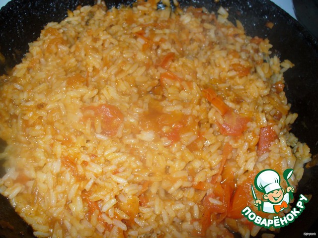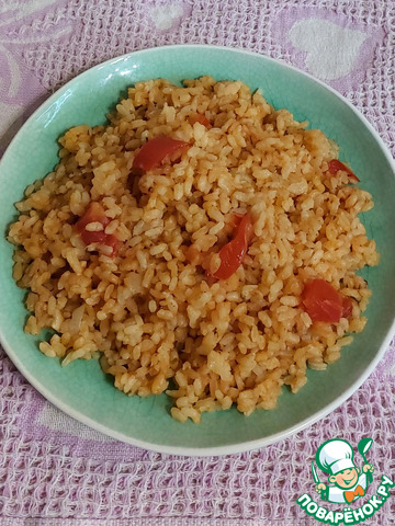 Пропитанный томатом рис - прекрасный вариант гарнира. Можно использовать в качестве самостоятельного блюда (я так и делаю).