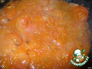 Добавить помидоры к луку и тушить еще 10-15 минут.