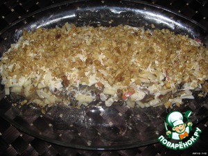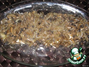 Следующий слой грибы с луком. Остуженные, обязательно!