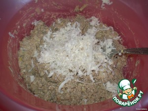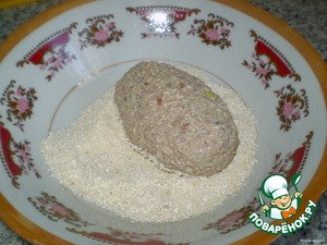 Из фарша сформовать небольшие котлетки и обвалять их в обсыпке. -