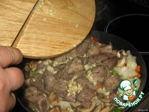 Теперь добавляем мелко нарезанный чеснок.