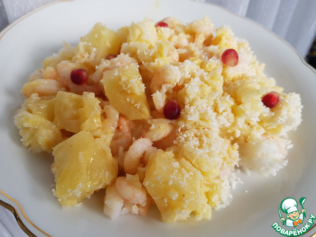 Скоро день Святого Валентина. Предлагаю Вашему вниманию очень вкусный салат из ананаса и креветок. Пикантность салата в его соусе.