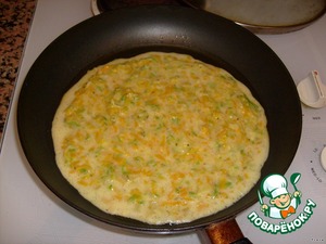 На разогретую сковороду льем немного масла и выливаем нашу смесь, на медленном огне поджариваем с одной и с другой стороны.