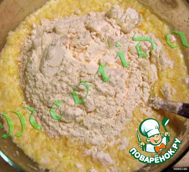 • Добавляем сыворотку и разрыхлитель (тесто на глазах начинает увеличиваться в объеме),