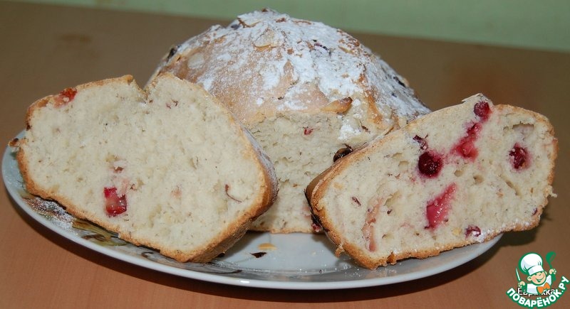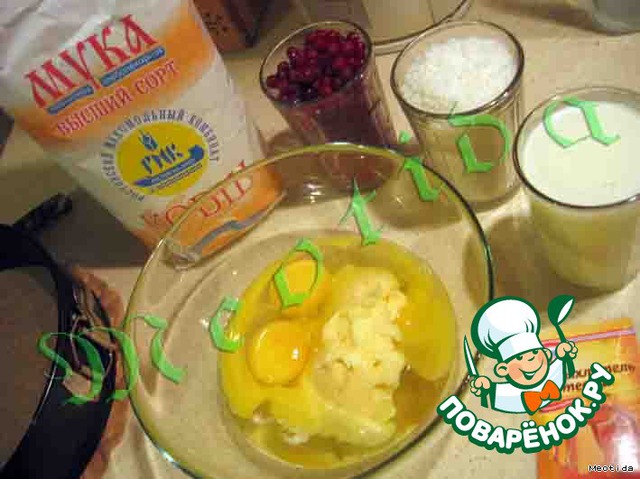 Испекла пирог. Получился кислым, ну а как по- другому, ведь клюква кислая сама по себе. Да и муки в ингредиентах много. Извините.