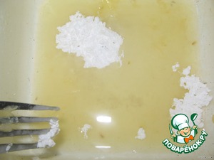 Яйца (3 шт.) взбиваем с сахаром до увеличения массы вдвое. -