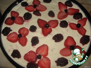 Суфле немного застыло. Так что, на него можно выложить нарезанные ягоды или фрукты (любые по Вашему вкусу).