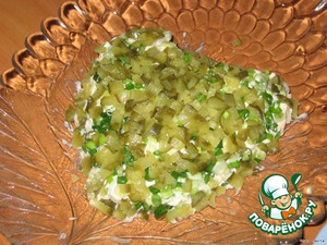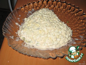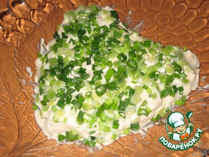 Каждый слой перемазать соусом: смешать майонез, сливки, соевый соус и красный горький перец.