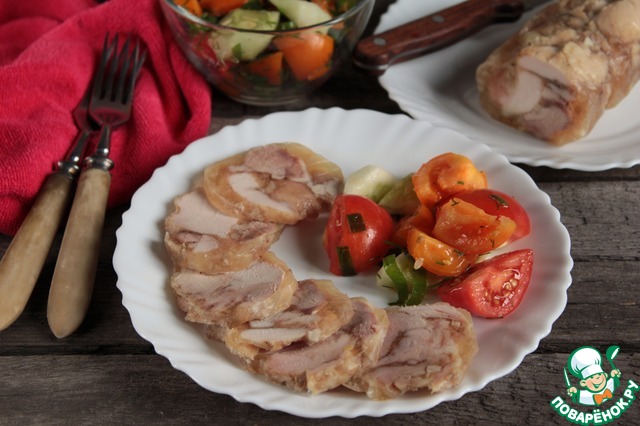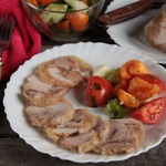 Примерно тоже, что и "Сальтисон". Но варить в тетрапаке просто остерегаюсь, потому, что он не приспособлен для варки. И клей, которым скреплена сама коробка и бумага и фольга ну никак не должны варится. Какие химические вещества при этом выделяются и впитываются мясом, лучше не знать. А потому делаем то же самое только в рукаве для запекания и отправляем в духовку.