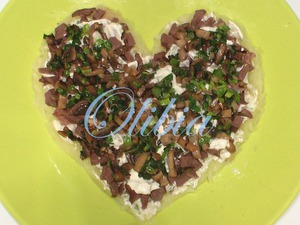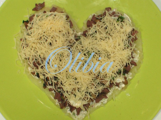 Сердце заранее отварите в подсоленной воде в течение 2 ч. Сваренное сердце нарезать мелкими кубиками.